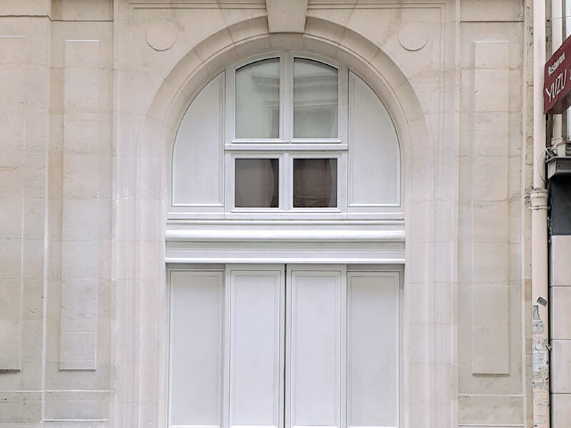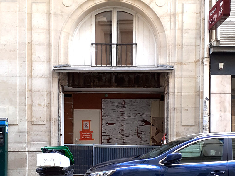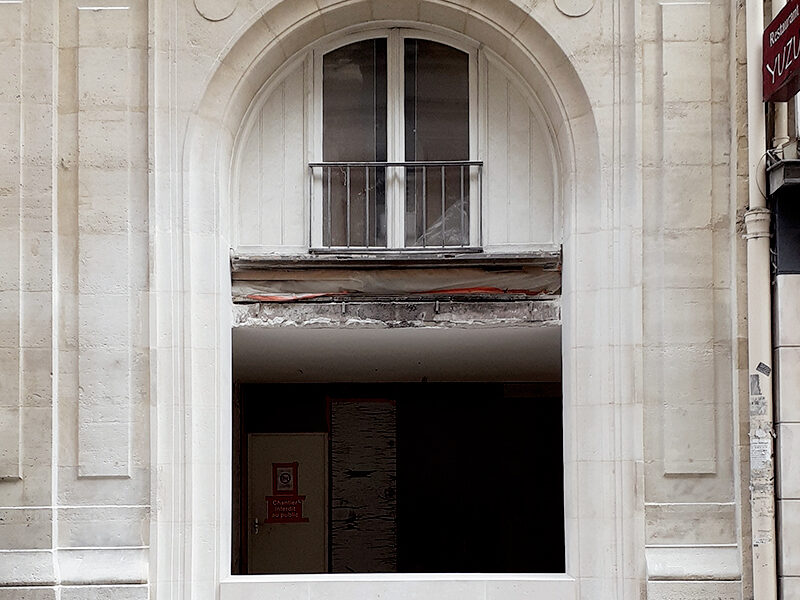 Modification d’une vitrine commerciale par une façade en panneautage bois,